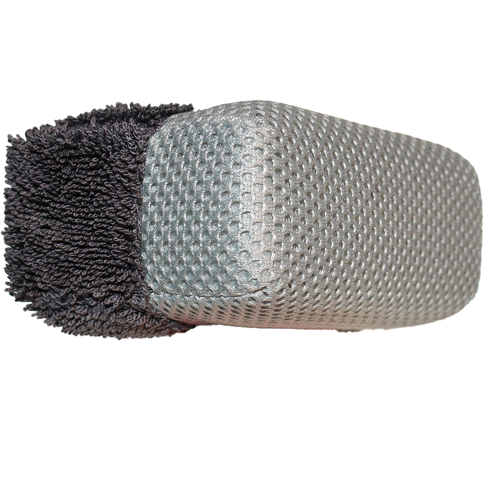 Product is held away from the operators hand due to a barrier layer beneath the microfiber section which ensures minimal operator contact.